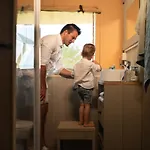 욕실에는 개별 변기, 샤워도 있습니다.